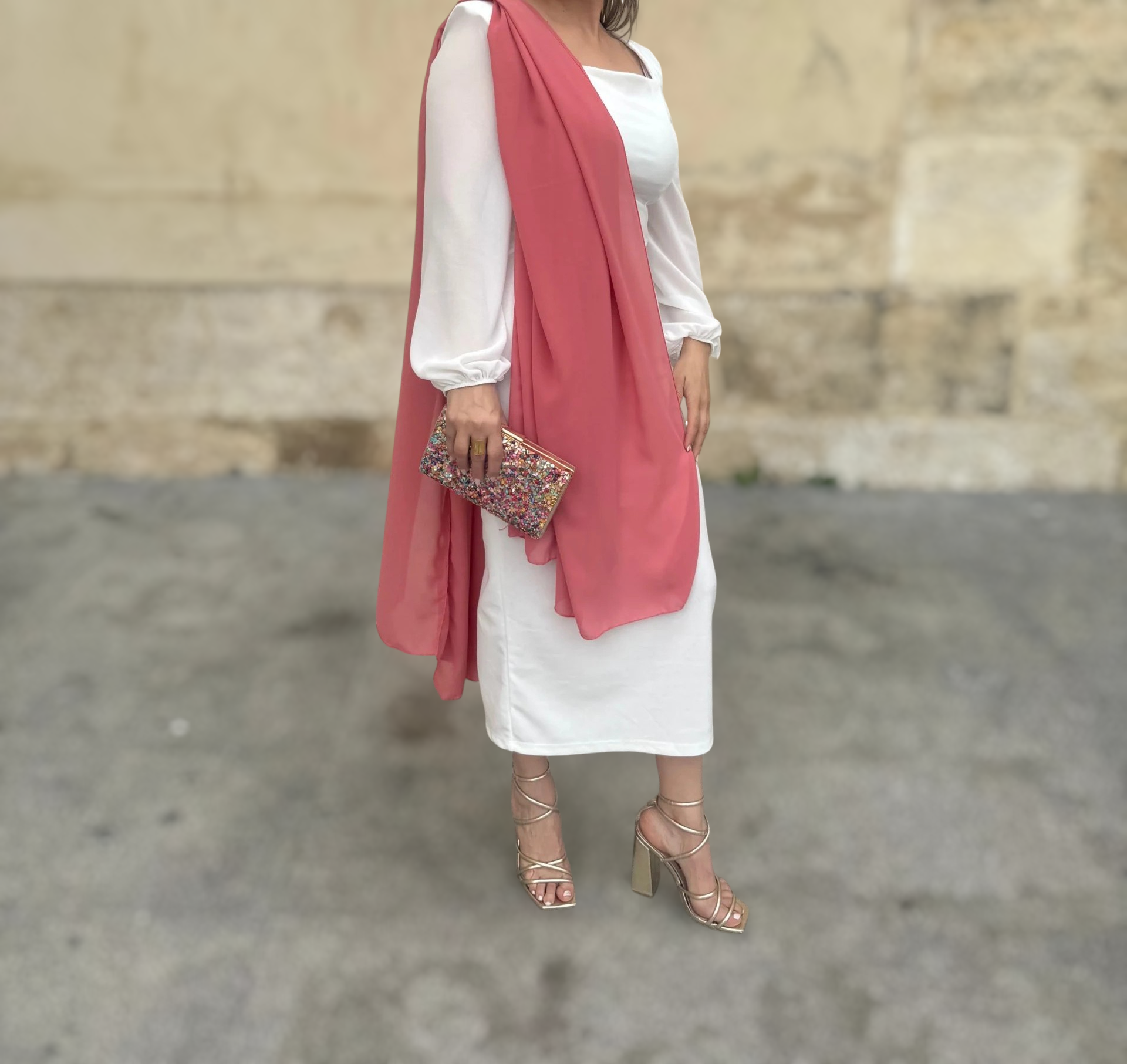 Confeccionada en un tejido vaporoso de textura suave, destaca por su movimiento etéreo y su capacidad para elevar cualquier look de invitada.