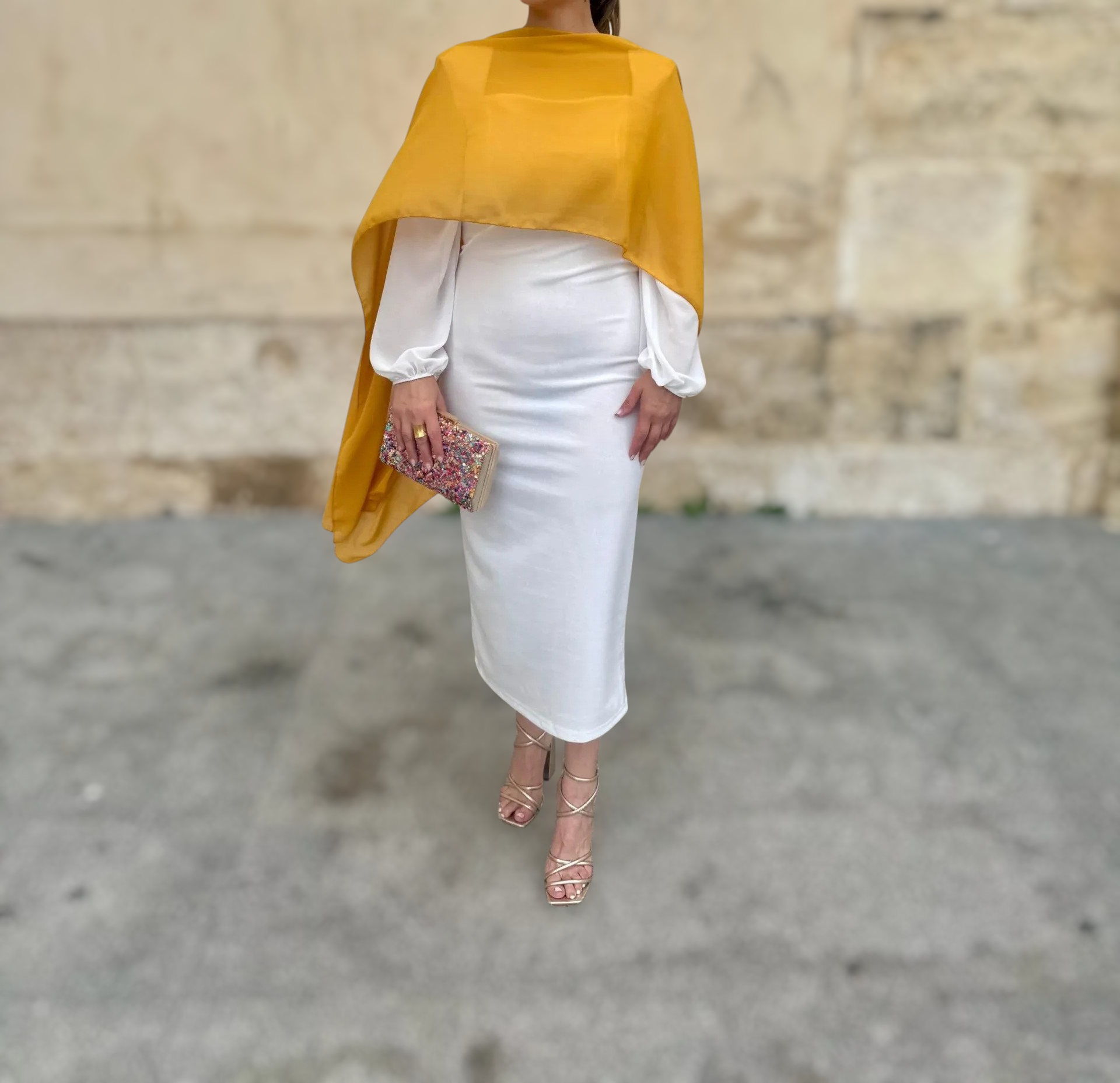 Ideal como complemento de invitada, de fiesta o para ocasiones especiales, la Capa Ada es sinónimo de estilo sofisticado, movimiento y una elegancia atemporal.