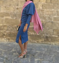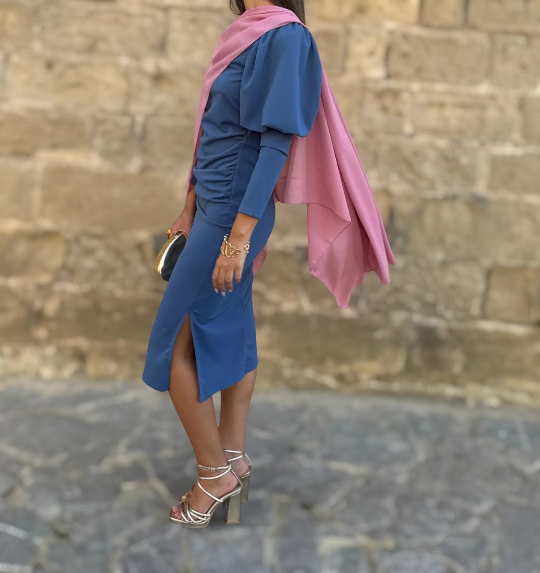 Confeccionada en un tejido vaporoso de textura suave, destaca por su movimiento etéreo y su capacidad para elevar cualquier look de invitada.