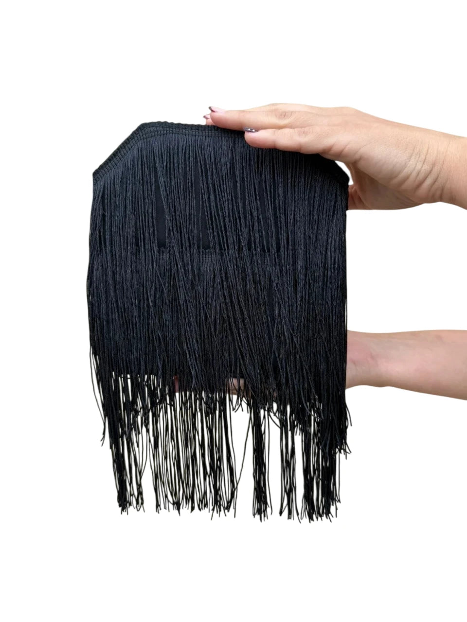 Cluth de mano con estructurada y decorado con largos flecos que caen alrededor.