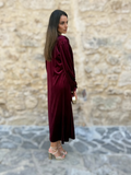 Ideal como complemento para eventos, celebraciones o looks de invitada, el Kimono Terciopelo Burdeos es sinónimo de estilo exquisito, feminidad y elegancia contemporánea.