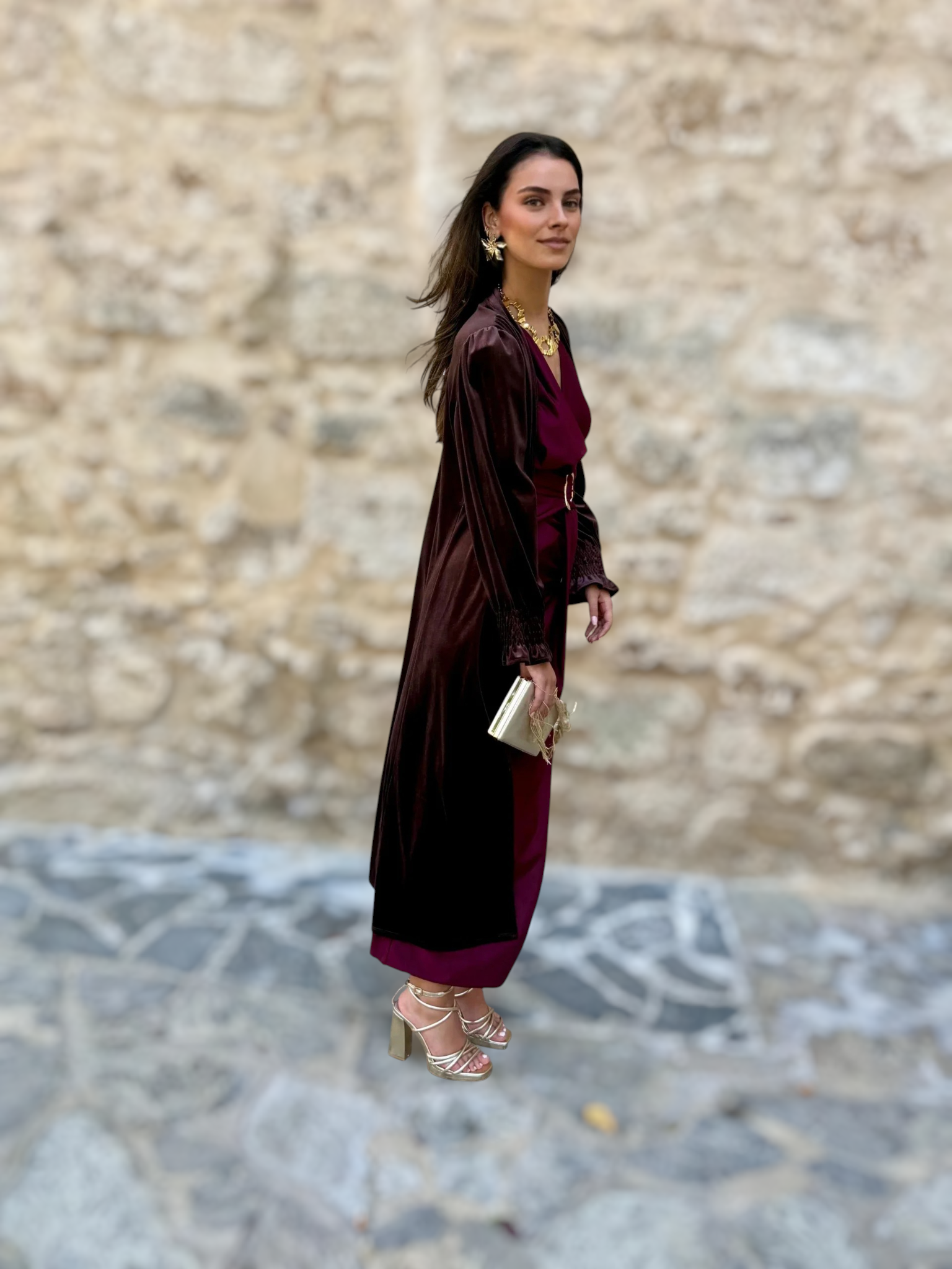 Ideal como complemento para invitadas, de fiesta o para ocasiones especiales, el Kimono Terciopelo Chocolate es sinónimo de elegancia serena, estilo refinado y una sofisticación que nunca pasa de moda.