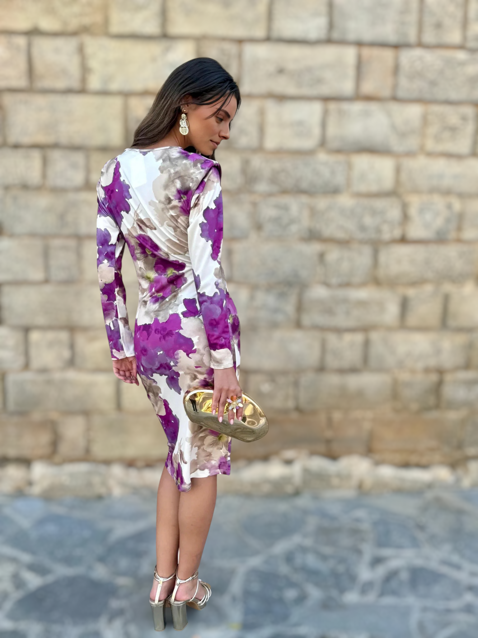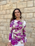 Su estampado artístico de flores y matices difuminados aporta personalidad y modernidad, logrando un equilibrio perfecto entre romanticismo y estilo contemporáneo. Cada detalle contribuye a una estética refinada y muy femenina.