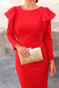 El Vestido Cristina Rojo es una prenda que combina elegancia y fuerza en un diseño estructurado y muy favorecedor. Su cuello cerrado y las mangas largas con volúmenes marcados en los hombros aportan un aire sofisticado y distinguido, realzando la feminidad con una silueta impecable.