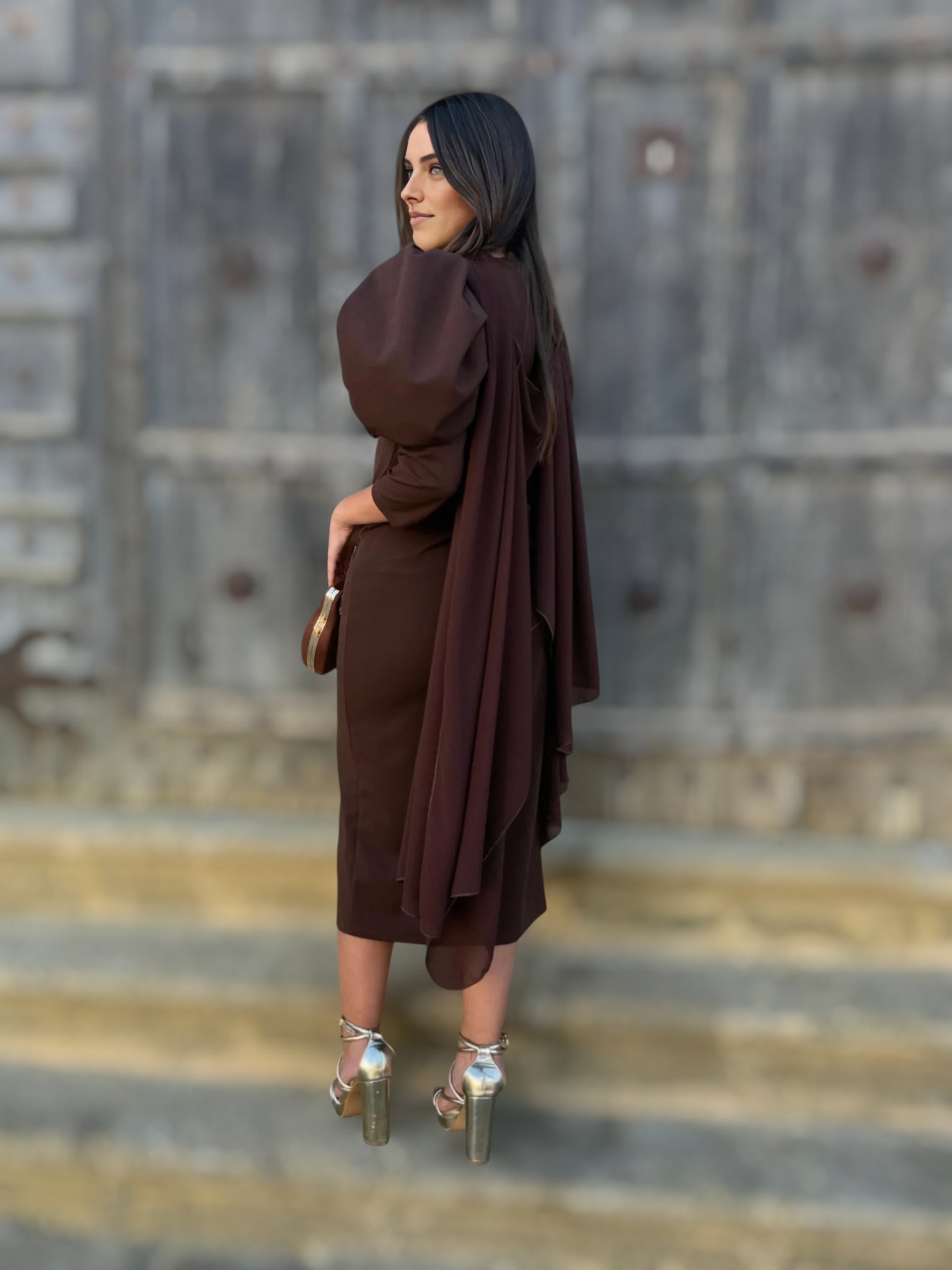 Perfecto como vestido de invitada, de fiesta o para eventos especiales, el Vestido Dolores Chocolate es una elección segura para destacar con estilo, personalidad y clase.