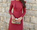 Confeccionado en un tejido con cuerpo y ligera elasticidad, se adapta al cuerpo sin perder comodidad, ofreciendo una caída impecable y favorecedora. El escote cerrado y las mangas largas aportan un aire refinado, ideal para eventos de tarde o de noche.