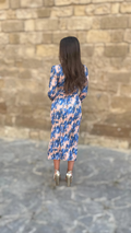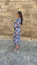 El Vestido Jimena es una pieza elegante y sofisticada que combina dinamismo y estilo en un diseño lleno de movimiento. Su escote en pico cruzado realza el busto con sutileza, mientras que el nudo drapeado en la cintura estiliza la silueta y crea un efecto visual favorecedor.