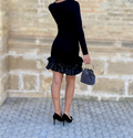 El Vestido Almenia es una prenda que fusiona elegancia y un toque coqueto en un diseño sofisticado y actual. Su corte ajustado y cuello cerrado realzan la silueta de manera favorecedora, mientras que el volante doble en el bajo aporta movimiento, volumen y un aire femenino lleno de estilo.
