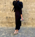 El Vestido Leticia es una prenda que combina elegancia y modernidad en una silueta envolvente y favorecedora. Su escote cerrado y las mangas largas con volumen en los hombros aportan un aire sofisticado y estructurado, realzando la feminidad con un toque distinguido.