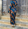 El Vestido Ona es una prenda que destaca por su carácter y sofisticación, perfecta para mujeres que buscan un look con personalidad. Su estampado abstracto y lleno de fuerza combina tonos cálidos y fríos en perfecta armonía, creando un efecto visual cautivador y muy favorecedor.