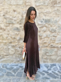 Perfecto como vestido de invitada, de fiesta o para ocasiones especiales, el Vestido Pilar Chocolate es sinónimo de sencillez sofisticada y estilo natural.