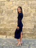 Perfecto como vestido de invitada, de fiesta o para una ocasión especial, el Vestido Rosario Azul Marino es sinónimo de sofisticación natural, una prenda diseñada para destacar con estilo y confianza.