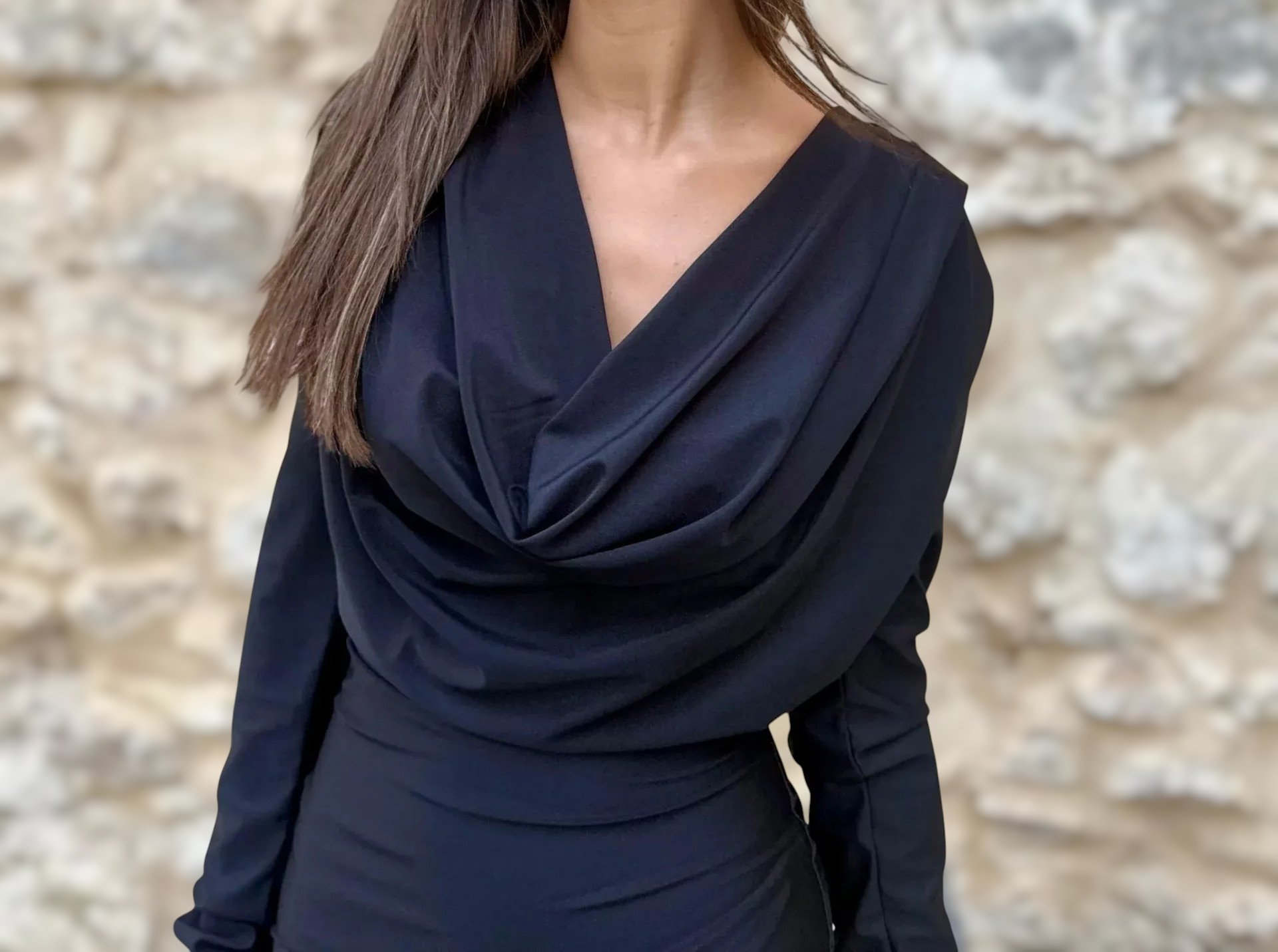El Vestido Teresa Negro es ideal como vestido de invitada o de fiesta, una elección sofisticada para mujeres que buscan elegancia, confianza y estilo atemporal.