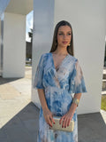 El Vestido Úrsula es una prenda que combina delicadeza y elegancia en una silueta fluida y muy femenina. Su escote cruzado en pico realza la parte superior con sutileza, mientras que las mangas sueltas aportan ligereza y movimiento, creando un conjunto armonioso y muy favorecedor.
